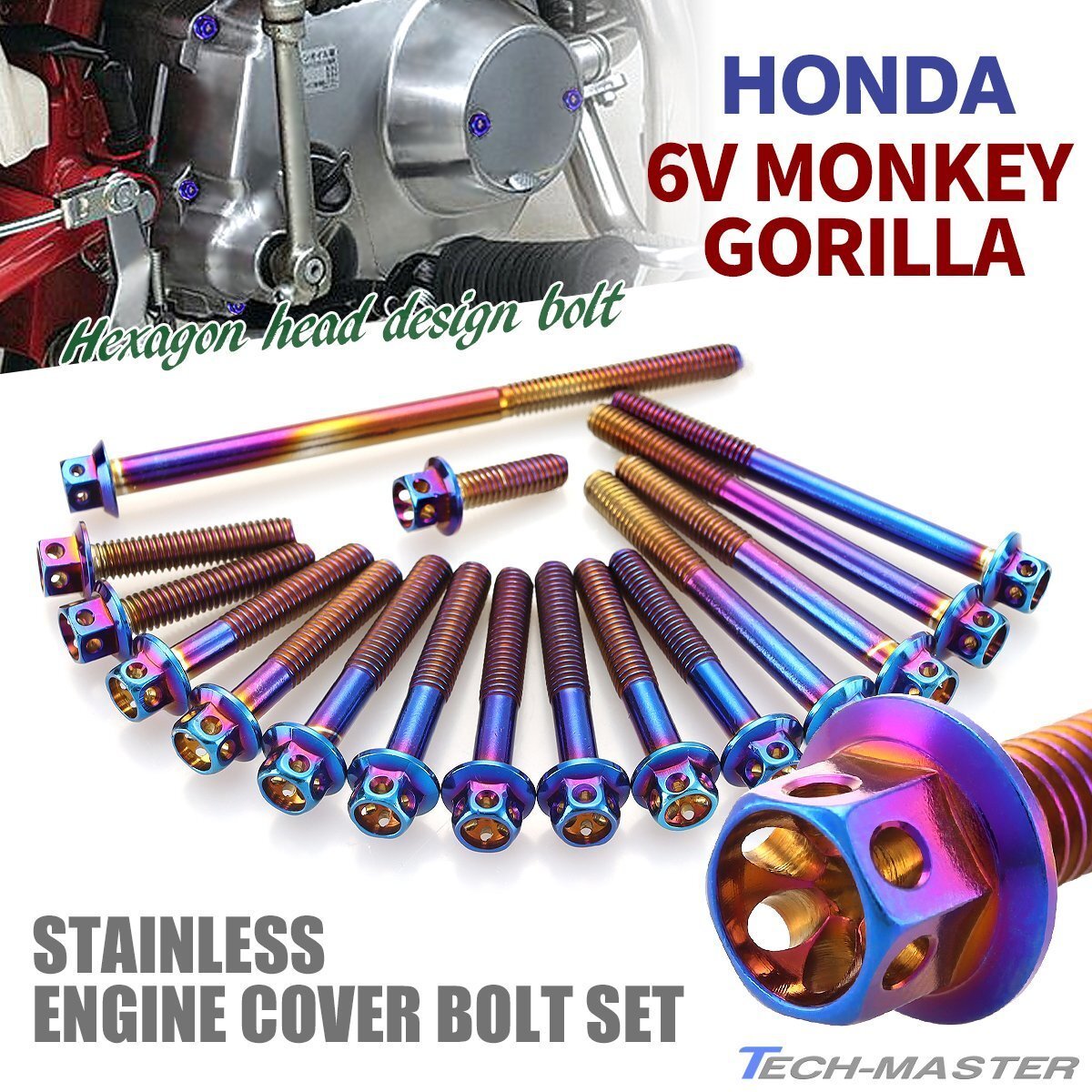 > 6Vモンキー ゴリラ CD50 エンジンカバーボルト 16本セット ステンレス製 フラワーヘッド ホンダ車用 焼きチタンカラー TB6081