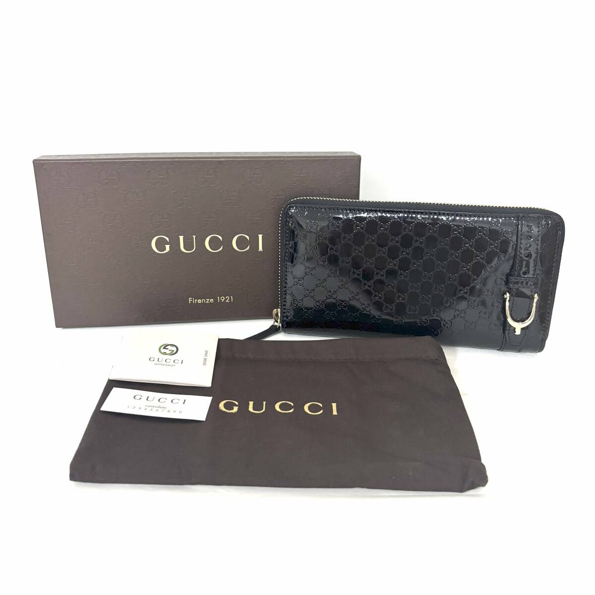 - SD2467 美品! GUCCI グッチ マイクログッチシマ 309758 ベルトモチーフ ラウンドファスナー 長財布 ロングウォレット エナメル ブラック