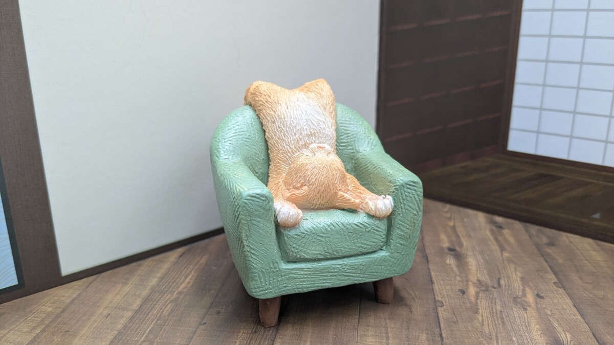 - プティフレンズ だらだらチェアキャット 猫 置物 マスコット オーナメント グリーン