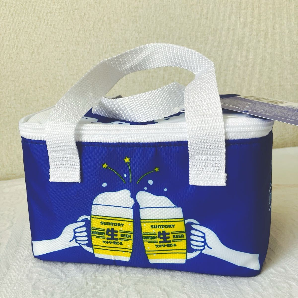 - m23)SUNTORY 生ビール 保冷バッグ サン生 乾杯 夏 太陽 入道雲 イラスト ブルー アルミ蒸着 ランチトート サントリー