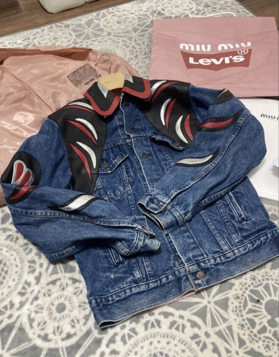 - 超激レア ミュウミュウ×リーバイス レザーパッチ デニムジャケット