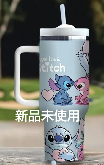 - ディズニー リロ&スティッチ スティッチ 水筒 ステンレススチール ウォーターボトル ストロー付 ハート