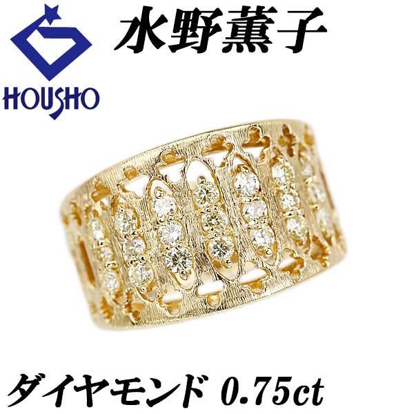 > 水野薫子 イエローダイヤモンド リング K18YG KAORUKO MIZUNO 作家 デザイナー 梨地 花 フラワー 幅広 太め 送料無料 中古 宝正 902659
