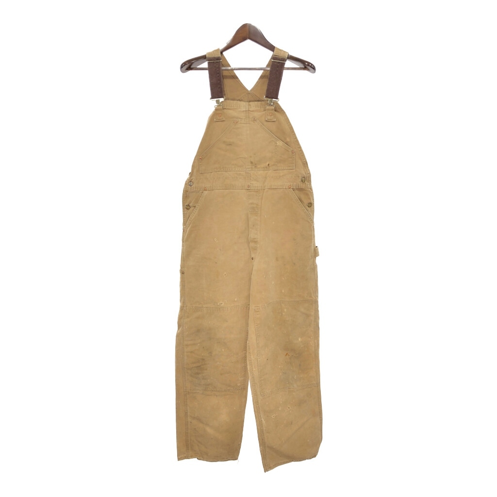 > 70年代 USA製 Carhartt カーハート ダック ダブルニー ビブオーバーオール 山ポケット ライトブラウン (メンズ W38 L32) 中古 古着 S9997