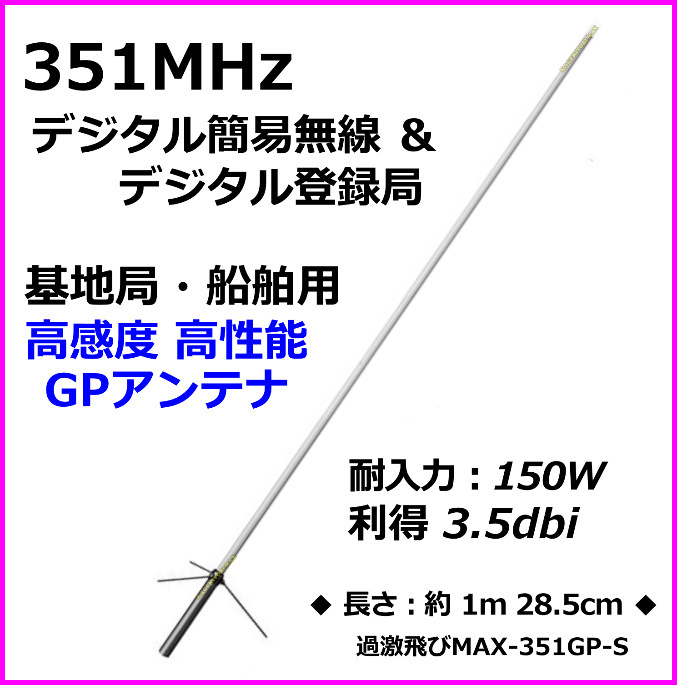 - 【S】351MHz デジタル簡易 無線専用設計 基地局用 遠距離通信 アンテナ S 新品 M型コネクター / デジ簡 無線機 に♪過激飛びMAX