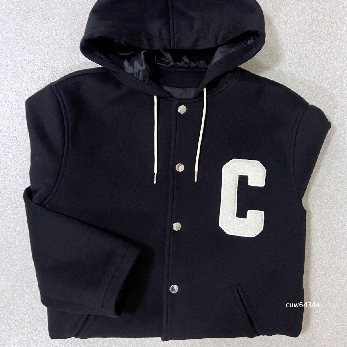 - 国内正規品 CELINE セリーヌ 極美品 48 Cロゴ ダブルフェイス パーカーブルゾン ジャケット ウール100% 黒 ブラック ブランド紙タグ