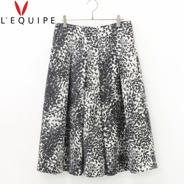- 【KA148】美品◆L'EQUIPE レキップ 総柄 ツイード タック フレア スカート 38