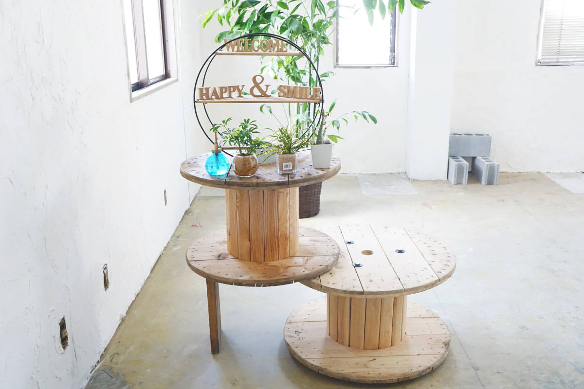 - ★ケーブルドラム★机 デッキ ガーデニング アウトドア カフェ ウッドデッキ インダストリー 庭 バーベキュー アンティーク かわいい