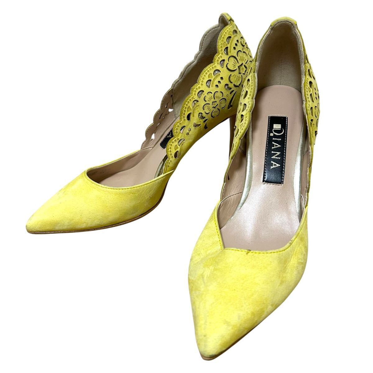 > ※P4 DIANA(ダイアナ) ヒールパンプス ピンヒール スエード イエロー 日本製 22.5cm