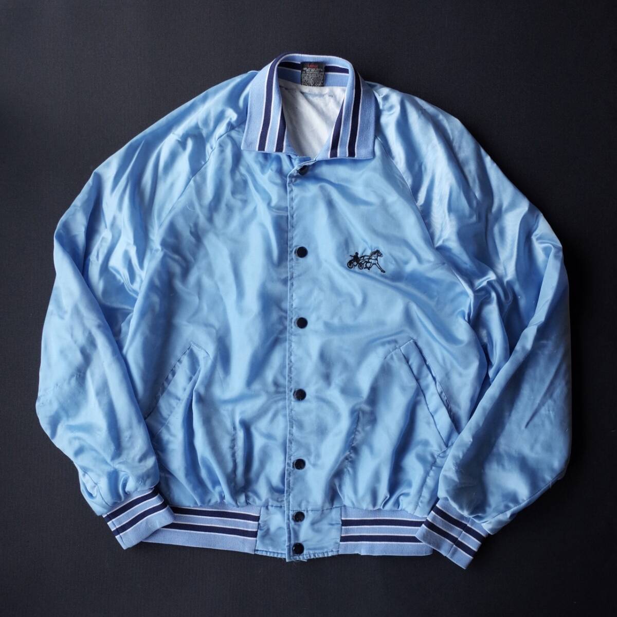 > 80's ビンテージ USA製 Hilton ナイロンジャケット 光沢 サテン スタジャン 水色 ブルー L USA古着