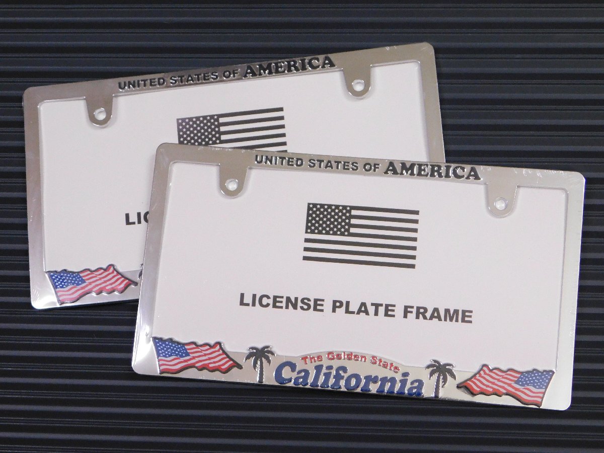 > ◆送料無料◆【US FLAG・アメリカ】※《ライセンスプレートフレーム / クローム2枚セット》 新基準対応 カリフォルニア