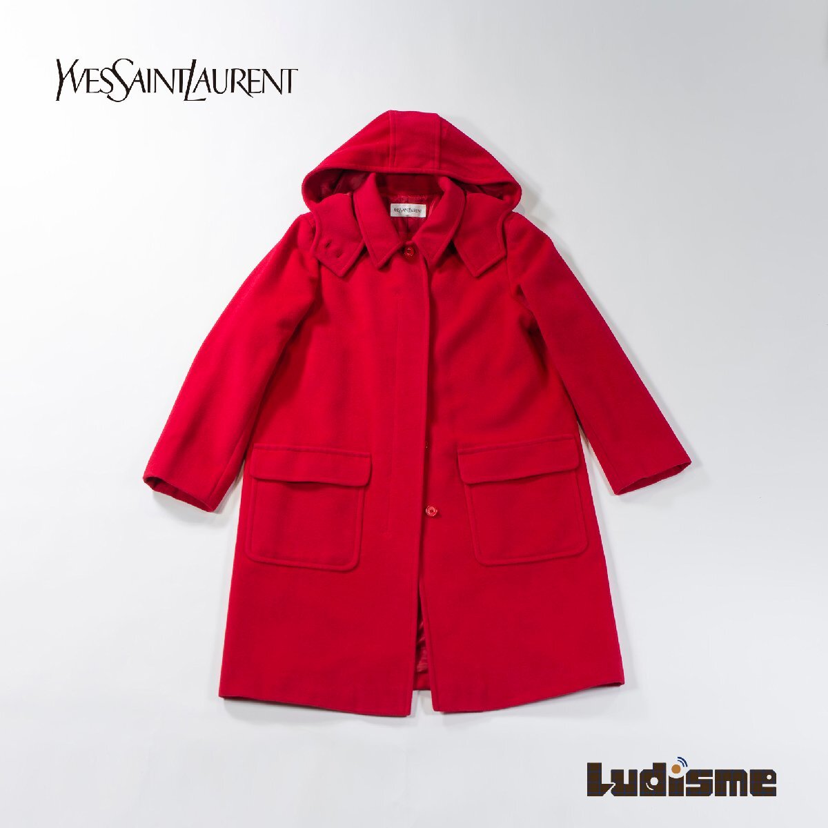 - Yves Saint Laurent イヴサンローラン ダッフルコート レッド アンゴラ ウール ロングコート フーデッドコート ◆美品◆ レディースコート