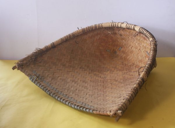 - 天然素材 手箕(てみ) 竹製ザル 竹細工 箕 竹箕 竹籠 竹編み 古道具 農具 サイズ:約64×48×H21㎝/20N9-40