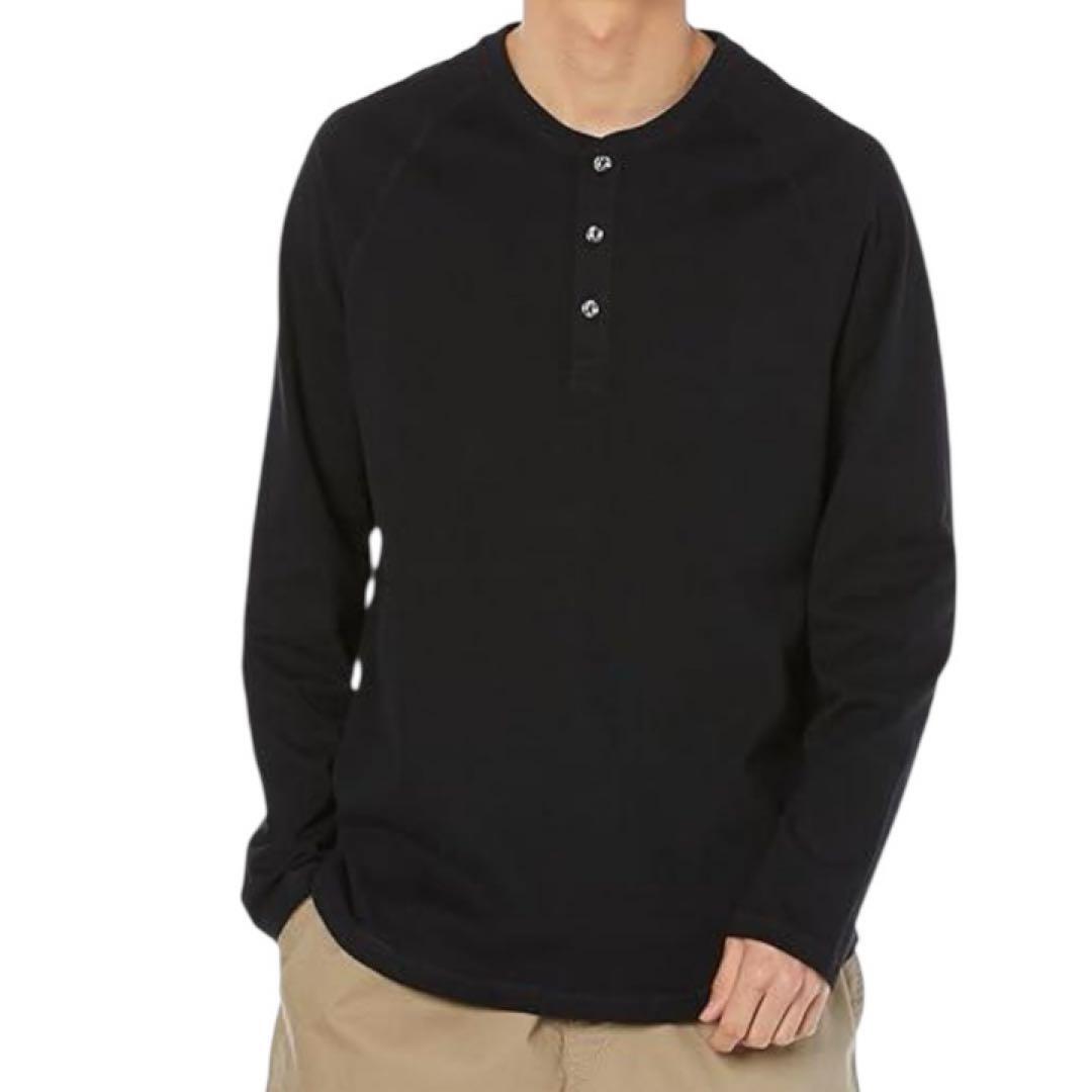 - 長袖Tシャツ ロンT ヘンリーネック ブラック XLサイズ 綿100% メンズ