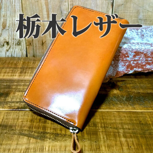 > ラウンドファスナー ロングウォレット 長財布 栃木レザー 手作り レザー 革 ハンドメイド タンニンなめし 牛革 ヌメ ブラウン