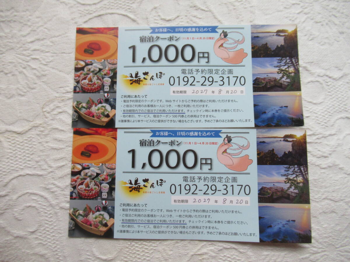 - 宿泊クーポン 大船渡「海さんぽ」1000円 2枚セット 11月1日~4月20日限定
