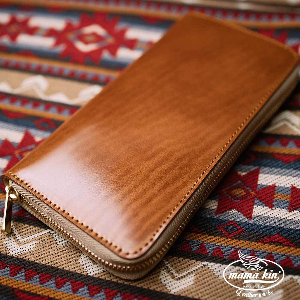 - コードバン 長財布 レザーウォレット ラウンドファスナー ジッパー 革財布 牛革 ブルー rf110cdv46rb