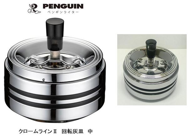 - 新品正規品 ペンギン社 クローム黒ラインII 回転灰皿中 スチール製