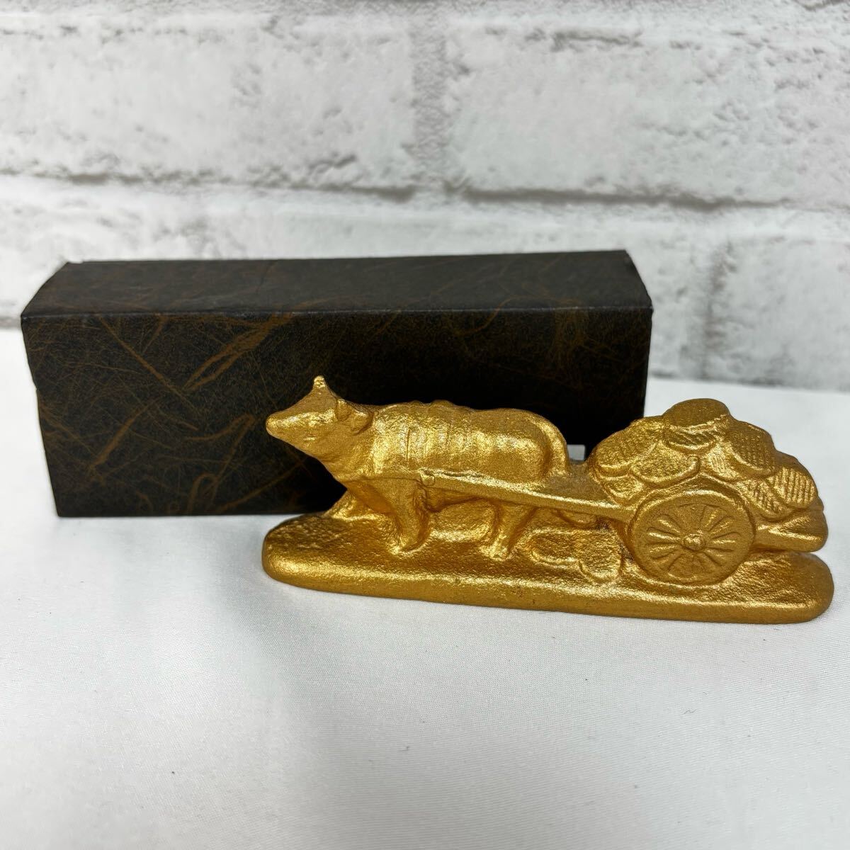 - 【共箱付き】金色 牛車 文鎮 金属工芸品 筆置き 書道具