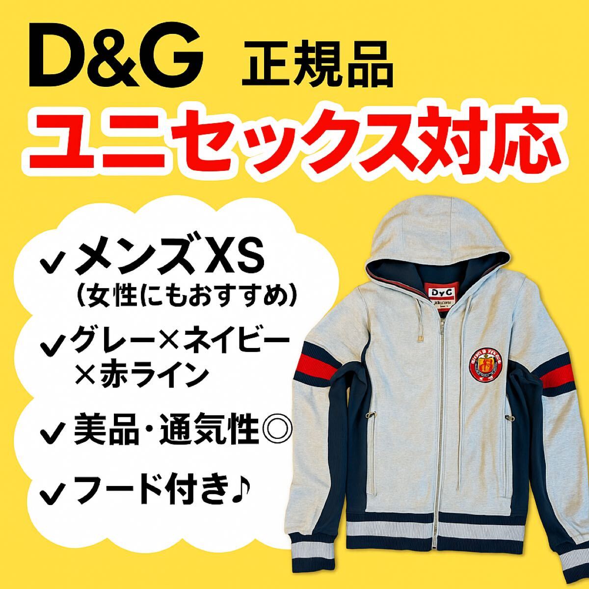 - D&G パーカー メンズXS グレー×ネイビー×レッド ユニセックス可 フード付き 美品