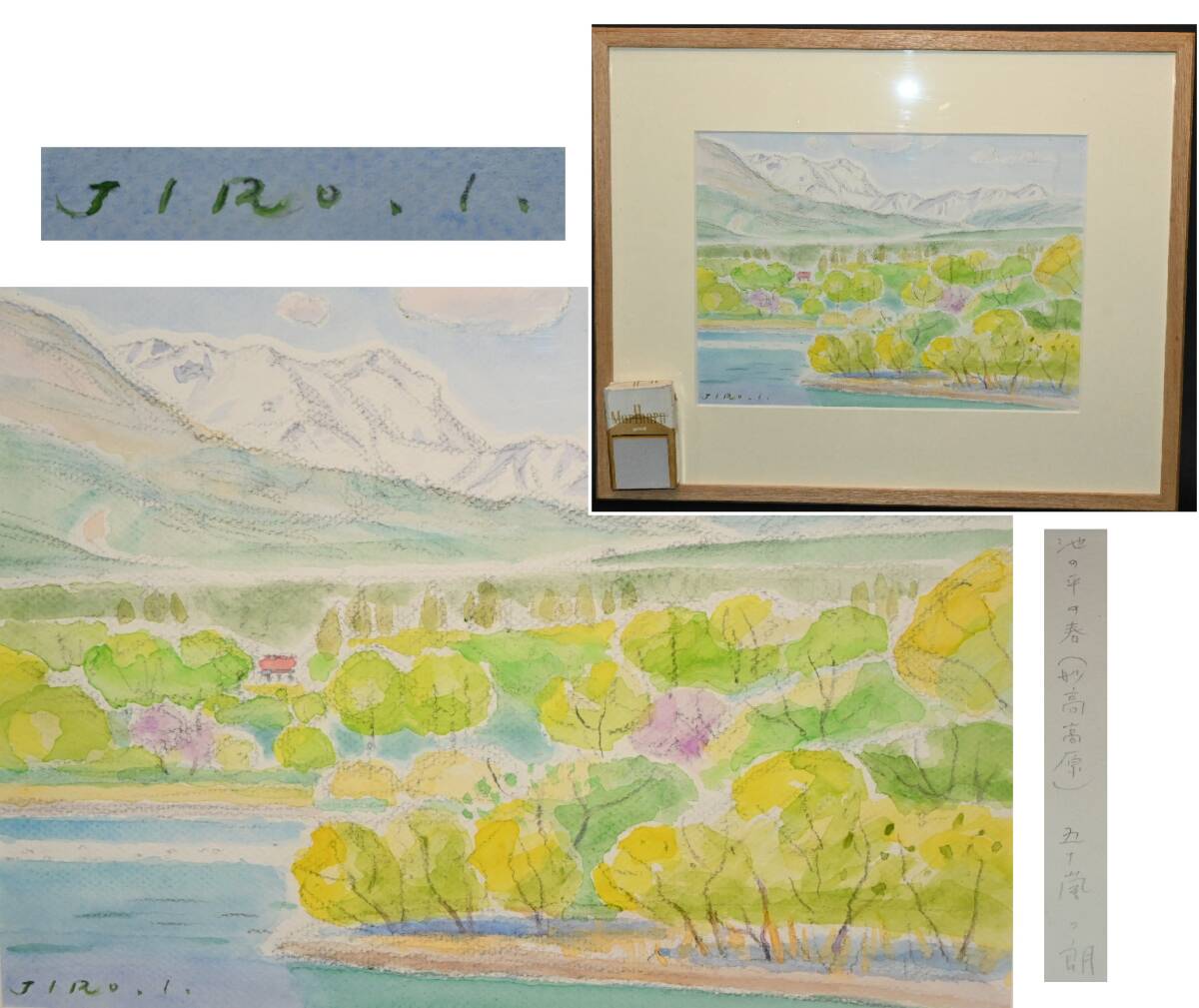 - 真贋保証■五十嵐二朗■ 水彩『池の平の春(妙高高原)』サイン有 額装 須賀川市ゆかりの画家 新潟県佐渡生 一陽会 絵画 風景画 水彩画