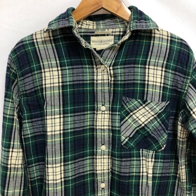 - A283 ラルフローレン XS アメリカ古着 長袖 コットン チェック シャツ グリーン Ralph Lauren レディース