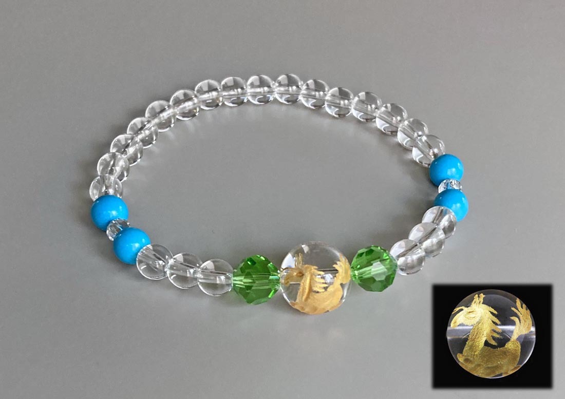 - 水晶パワー『黄金の左馬』 開運・縁起ブレスレット18cm