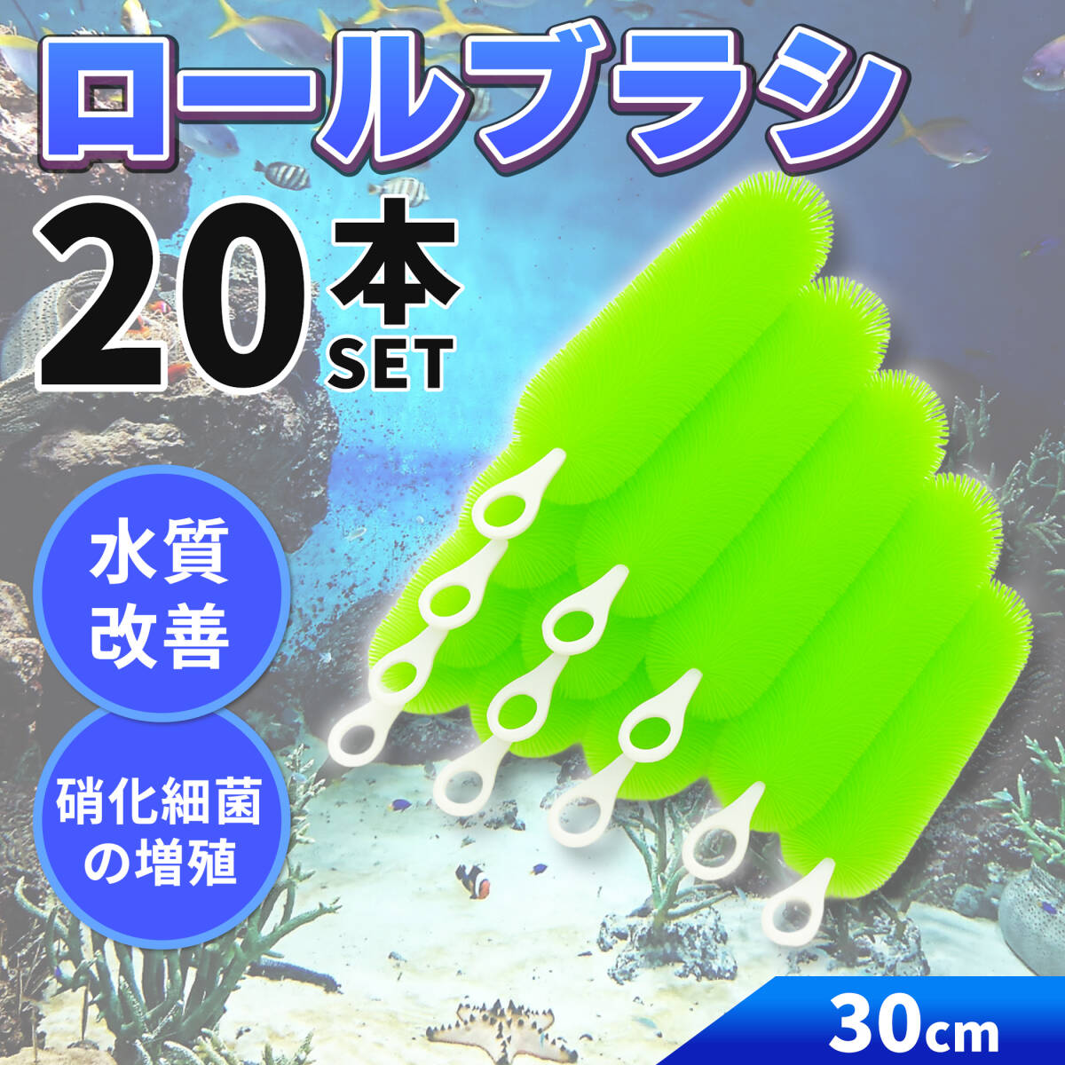 - 【30cm 緑】ロールフィルター 20本セット グリーン 濾過 ろ過 水槽 ロールブラシ 吊り下げ 横置き 汚れ除去 外部 ろ材