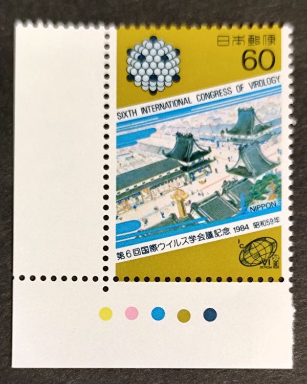 - [25091122]【第6回国際ウイルス学会議記念】単片 CMカラーマーク付「『芭蕉の辻』とウィルス粒子の模型図」60円 1984年発行 美品