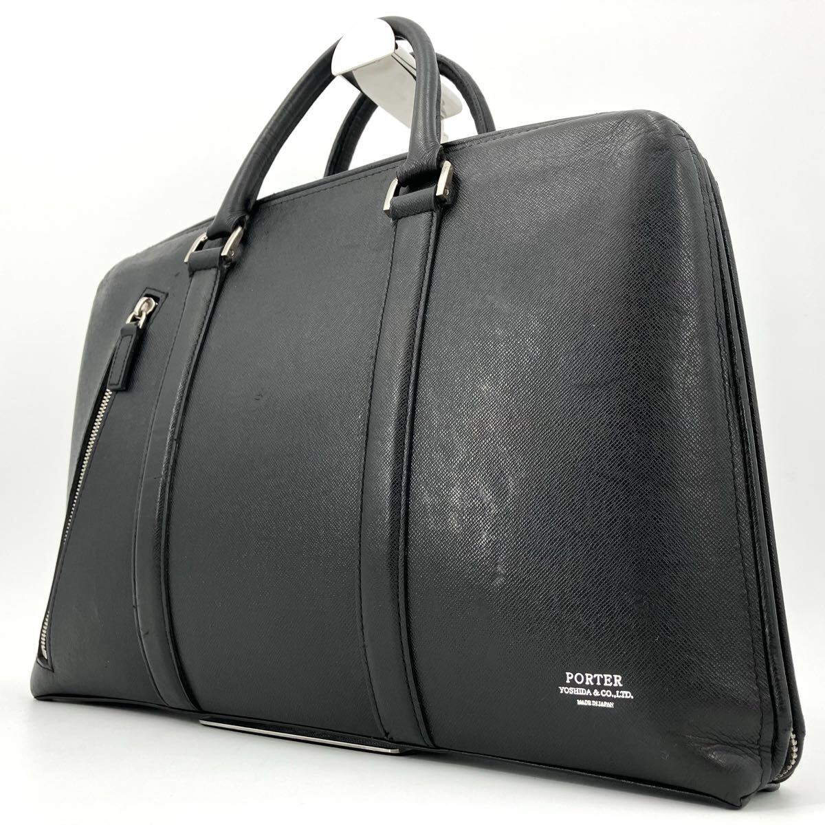 > 1円~ PORTER ポーター AVENUE アベニュー ビジネスバッグ ブリーフケース 書類鞄 A4収納可 レザー 本革 黒 ブラック 吉田カバン