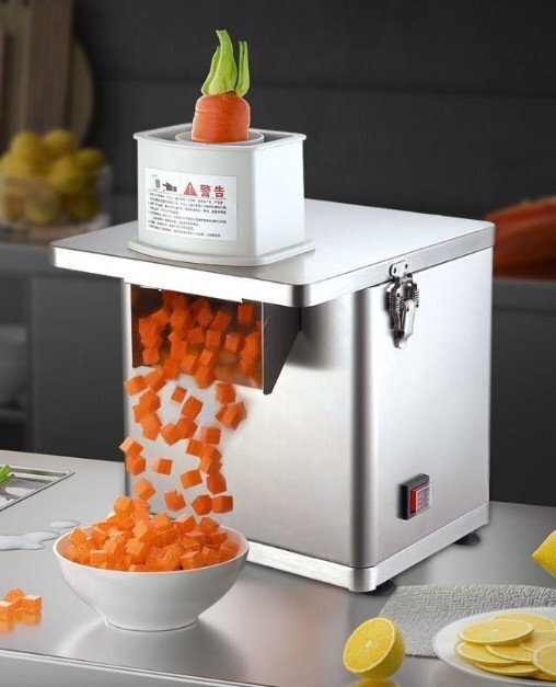 - 多機能野菜切り機です。千切り状や角切り状に加工でき、刃の網を交換することで厚みや大きさを調節できます。