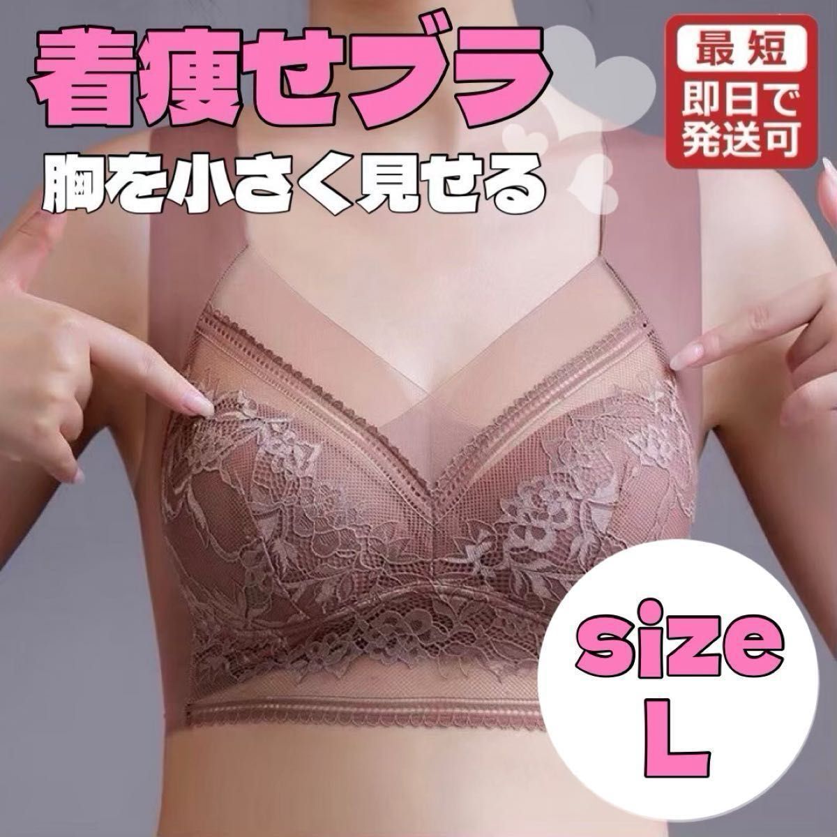 - 胸を小さく見せるブラ 単品 シームレス ナイトブラ ノンワイヤー L マロン 快適