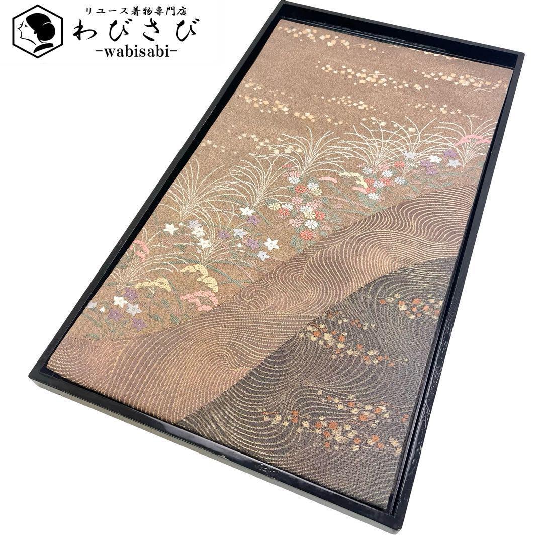 > 袋帯 満月光 花草模様 流水 唐茶色 O-4226 着物 きもの kimono 和服 和装 中古 リサイクル着物 【送料無料】