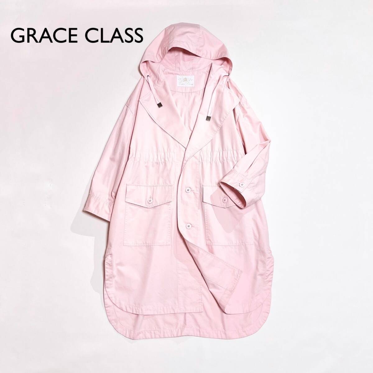 > ci30 GRACE CLASS 定価約7万 フーデッドトレンチコート 秋ライトアウター ロング丈 フードコート