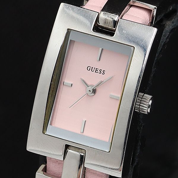 - 稼働 良品 ゲス 14760002 QZ ピンク文字盤 スクエア レディース腕時計 OSW 2000000 NSK