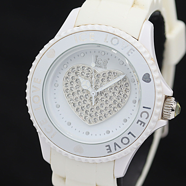 - 稼働 良品 アイスウォッチ ストーンダイヤル ハート 白文字盤 QZ レディース腕時計 NSY 2000000 NSK
