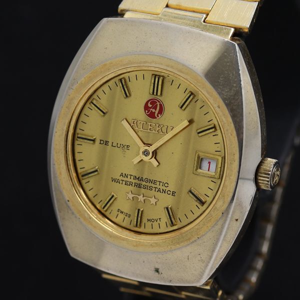 - 稼働 アテク デラックス デイト 手巻き ゴールド文字盤 メンズ腕時計 TKD 2000000 NSK