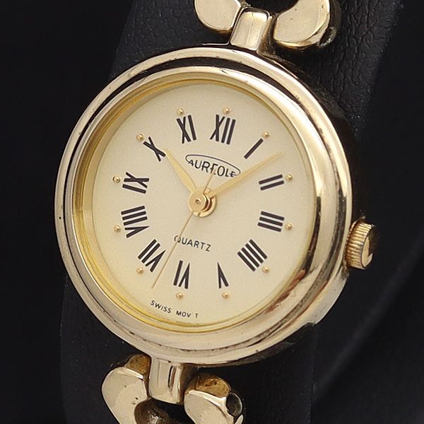 - 稼働 良品 オレオール QZ SW-343 ゴールド文字盤 ローマン ラウンド レディース腕時計 NKG