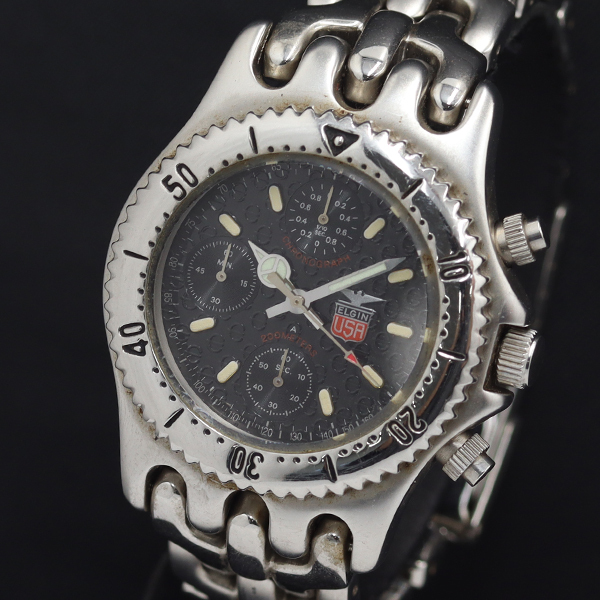 - 稼動 QZ エルジン 200M FK-528-A クロノ 黒文字盤 レディース腕時計 KRK 2000000 NSK