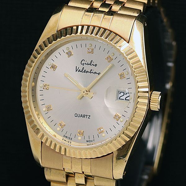 - 稼働 良品 ジュリオヴァレンチノ QZ シルバー文字盤 デイト ラウンド メンズ腕時計 DOI 2000000 NSK