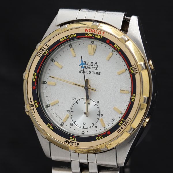 - セイコー アルバ ワールドタイム V602-7010 QZ ホワイト文字盤 メンズ腕時計 TKD 2000000 NSK
