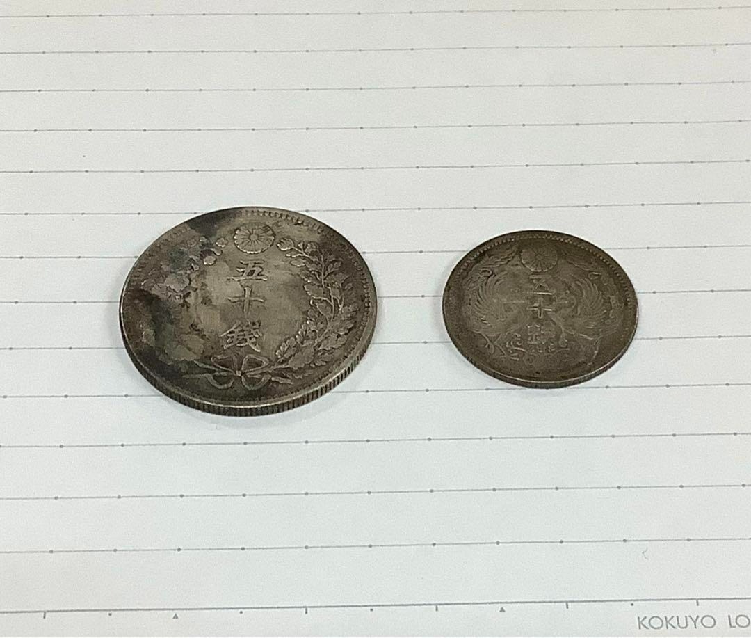 - 【2枚セット】明治31年 龍50銭 大正12年 鳳凰50銭 銀貨