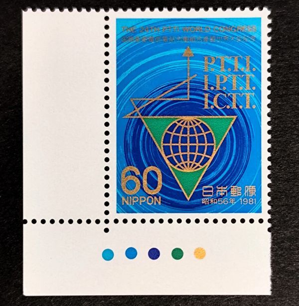 > [25091147]【国際郵便電信電話労働組合連盟世界大会記念】単片 CMカラーマーク付「宇宙の広がりとシンボルマーク」60円 1981年発行 美品