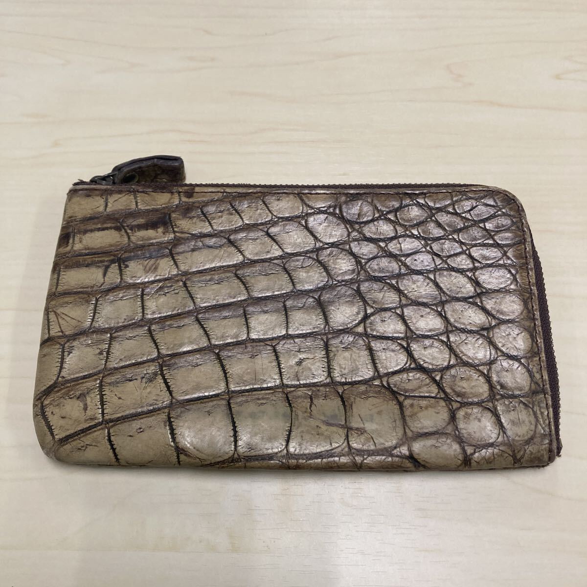 - クロコダイル L字ファスナー長財布 レザー ブラウン系