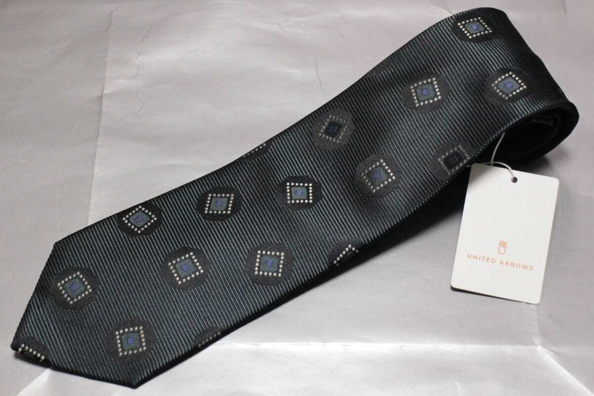 > ユナイテッドアローズ*カネパ新品ネクタイ超艶美麗グリーン*ブルー*ダークネイビー小紋極上ツイル織シャンブレー幾何学柄ハンドメイド