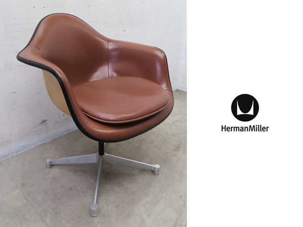 > ■P909■ハーマンミラー■ヴィンテージ■アームシェルチェア■ナウガレザー■FRP■コントラクトベース■イームズ■ミッドセンチュリー■