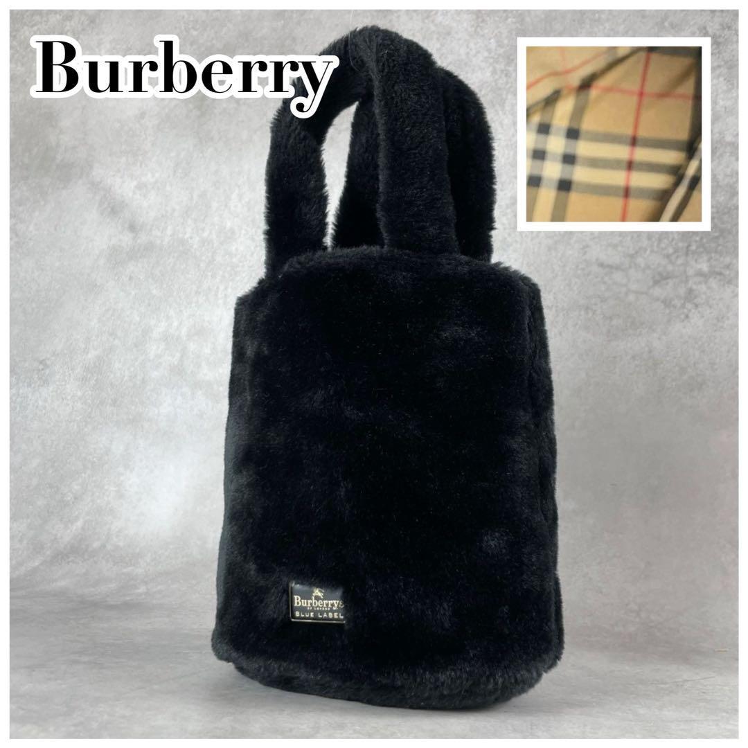 - バーバリー ブルーレーベル モフモフ ボア ブラック ノバチェック トートバッグ ブラック