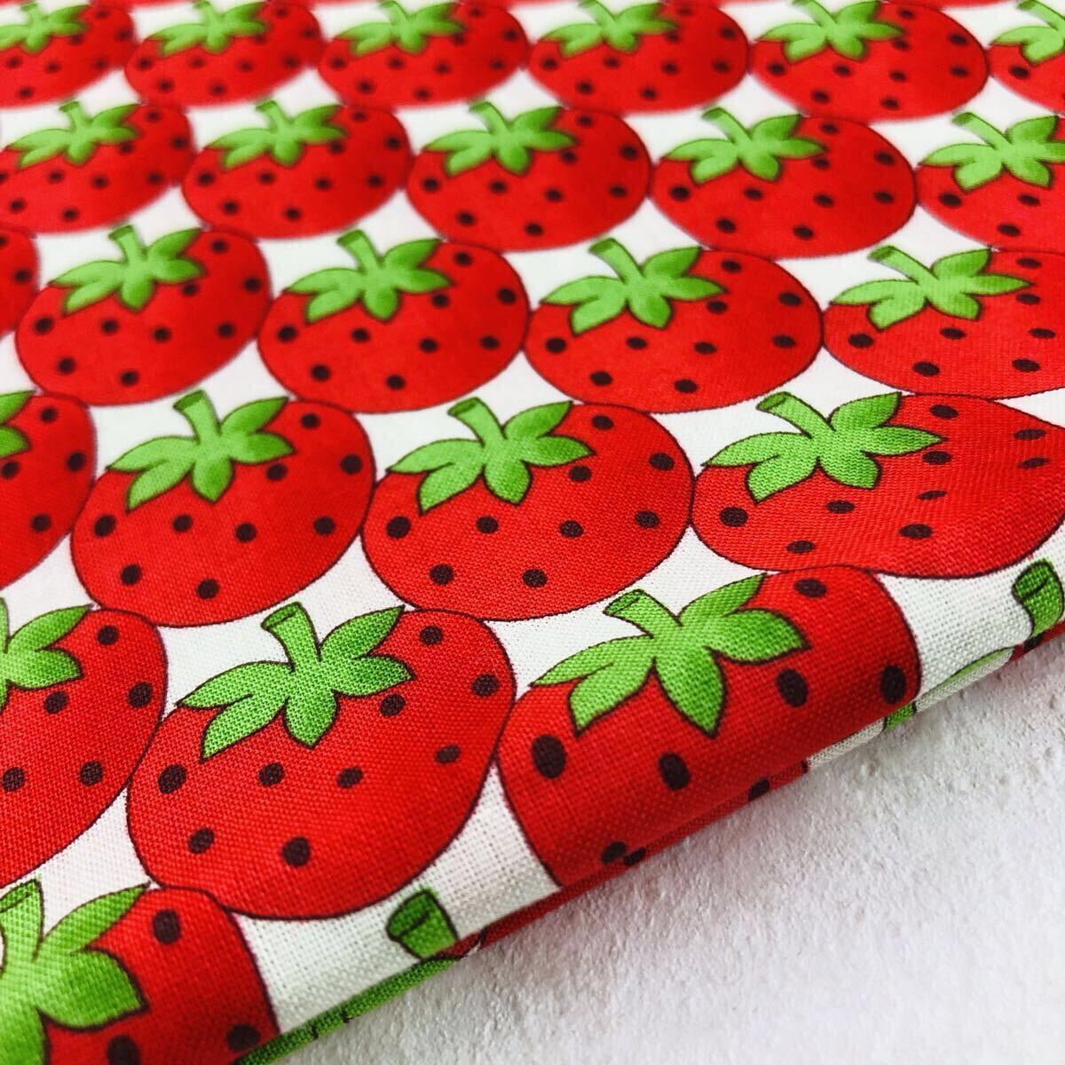 - 1m ブロード 可愛いいちご柄 セブンベリー 日本製 seven berry はぎれ いちご