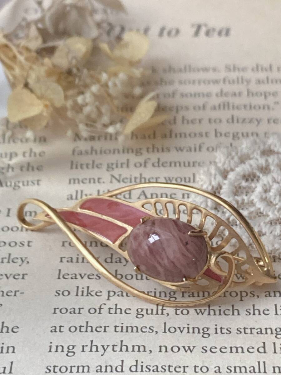 > ヴィンテージブローチ 天然石風 ゴールドトーン レッド系 美品☆vintage jewelry accessories F0111