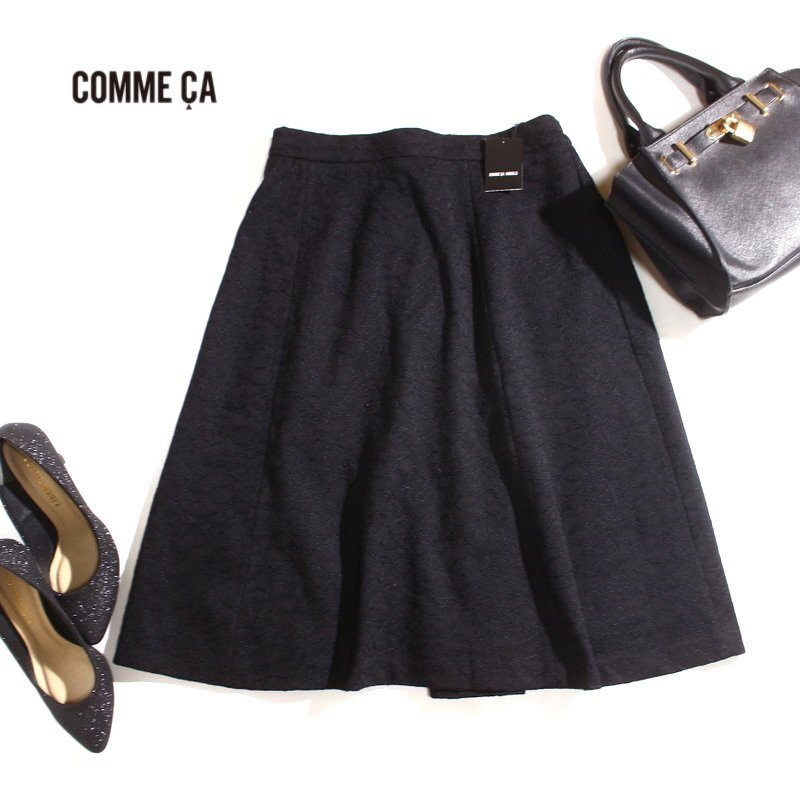 > 新品 未使用 コムサ モデルズ COMME CA models 大きいサイズ 合物 しっかり生地 厚手 刺繍 フレア レーススカート 15号 ブラック 黒 ミセス